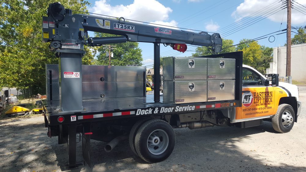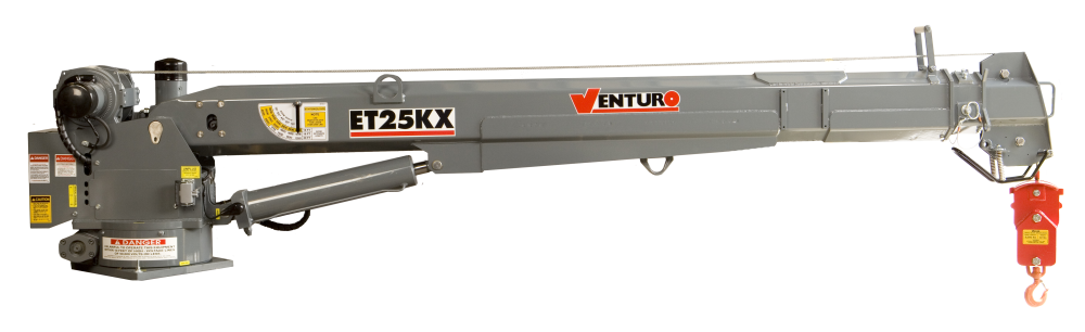 The Venturo ET25KXX is a 25,000 ft-lb electric-hydraulic service crane with a 5,000 lb maximum capacity at 5 ft. This larger crane gives operators the distance and strength they need for heavier loads at a short distance.