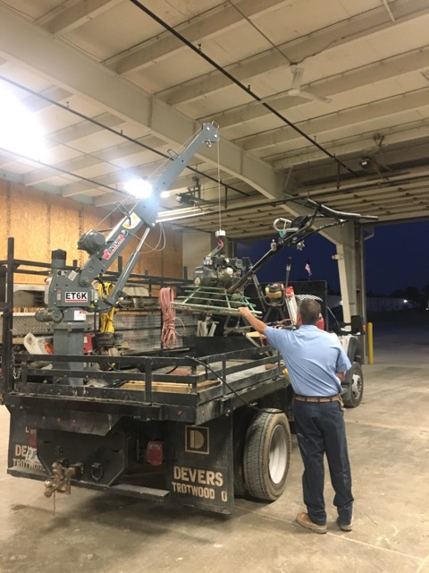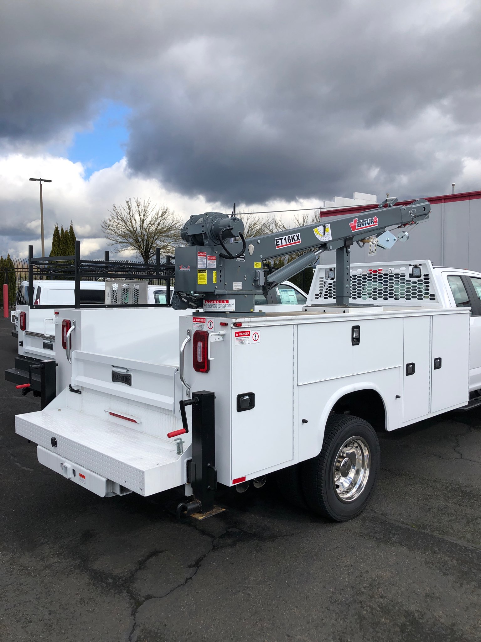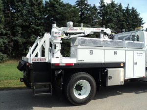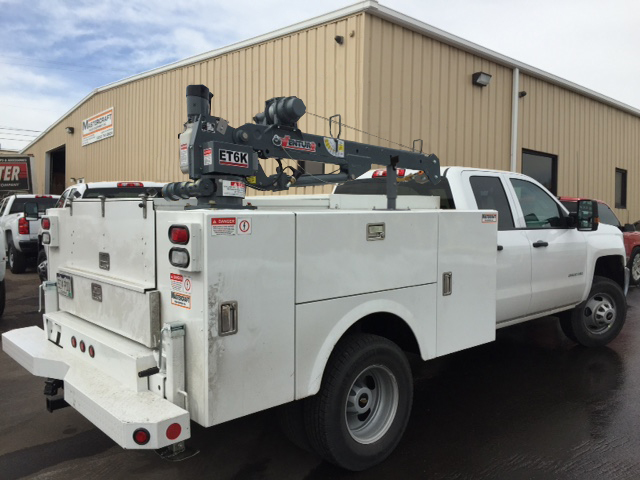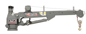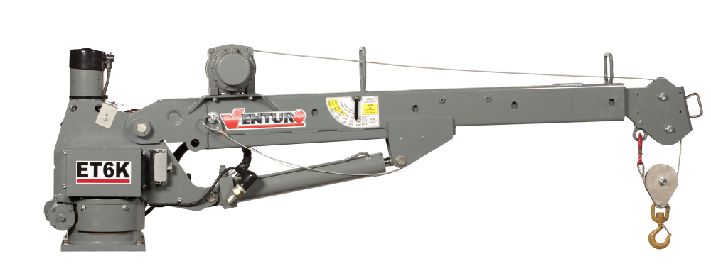 The Venturo ET6K service crane is a 6,000 ft.-lbs. crane with 2,000 lb. lifting capacity featuring electric winch, power rotation and hydraulic boom elevation with a single, manual extension up to 10 ft.
